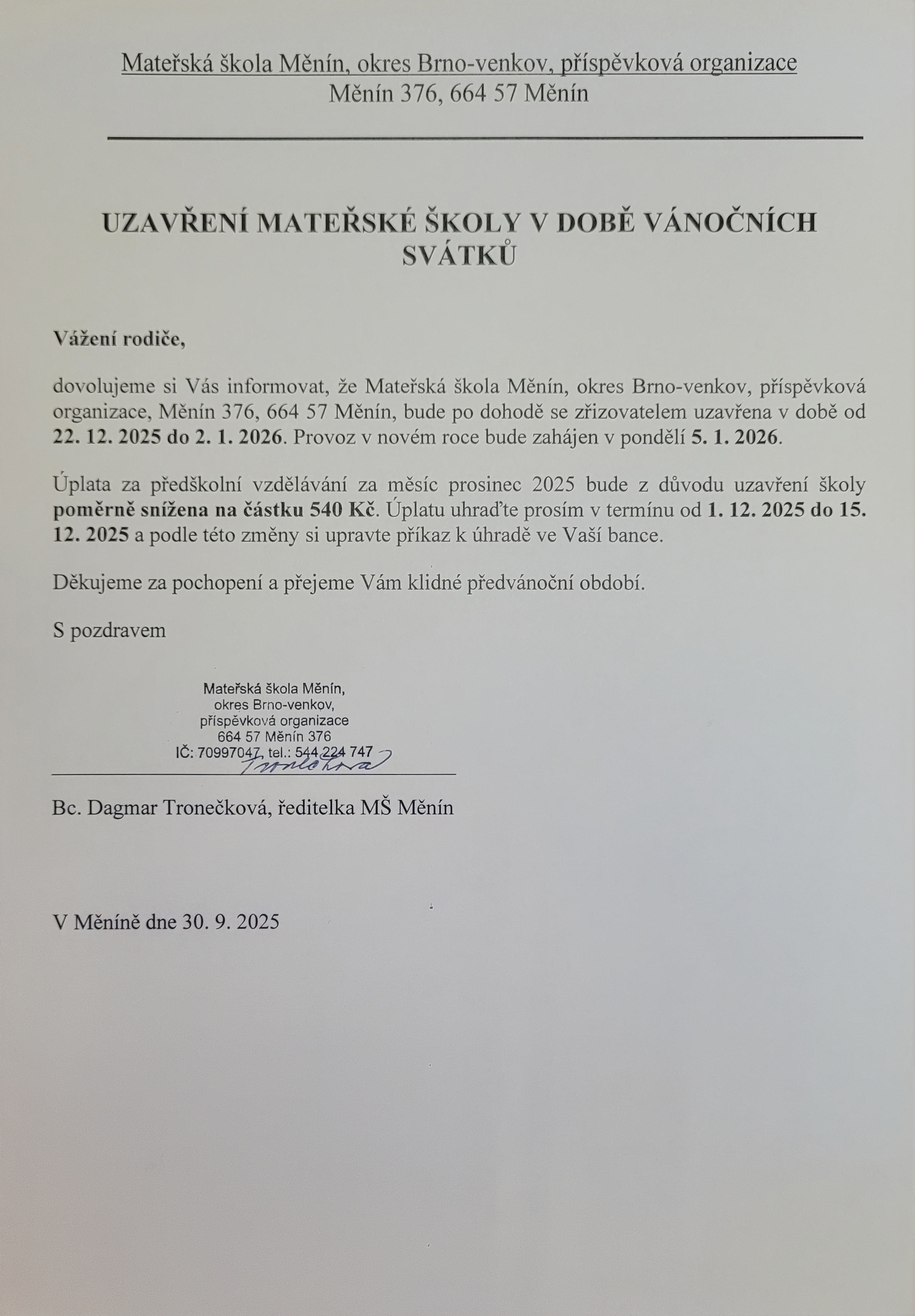 Tel.: +420 544 255 065 / materska.skola@menin.cz / jidelna.menin@seznam.cz
